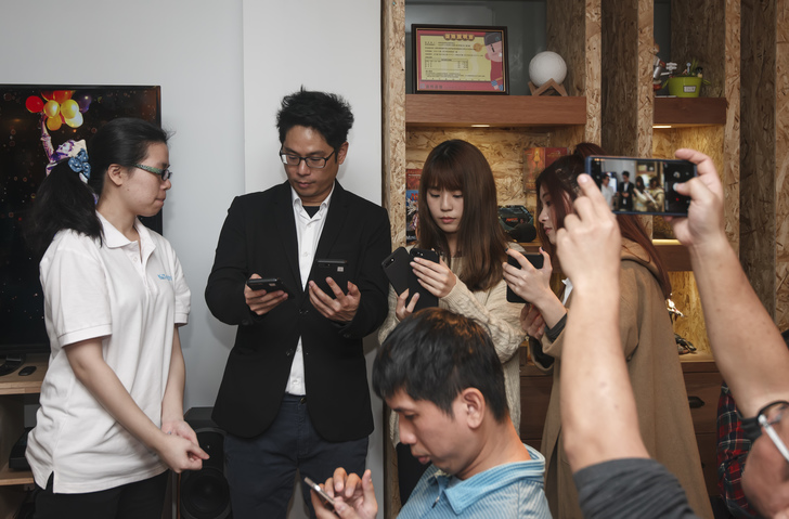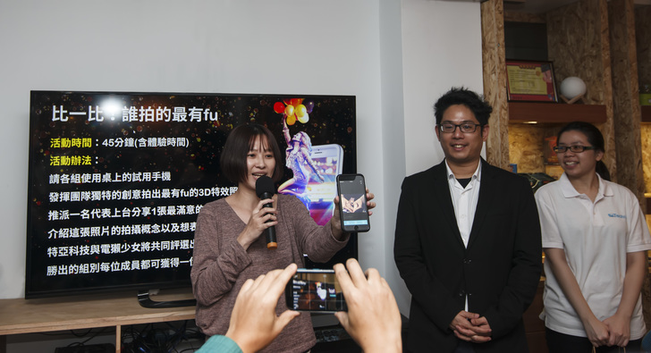 ▲ 每組桌上都配備了 T-Warp 手機殼的實機,與會人員馬上就可感受到 3D 體驗