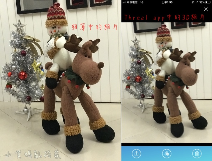 如果是從手機的相簿開啟照片,會是照片沒有轉3D的樣子,也就是看的到與我IPhone相機拍攝的照片是一樣的,只有使用threal app觀看時,會出現3D效果