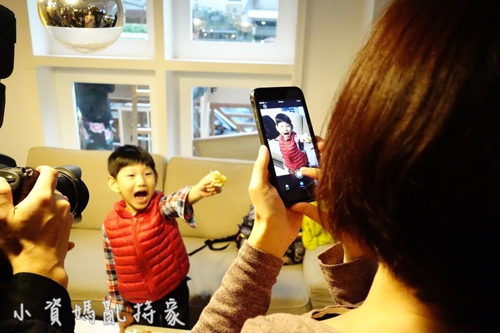 另外同組的人想試試看小孩想餵大人吃東西的樣子,不過孩子真的不好控制,大概搞了快半小時才終於讓兒子好好配合演出