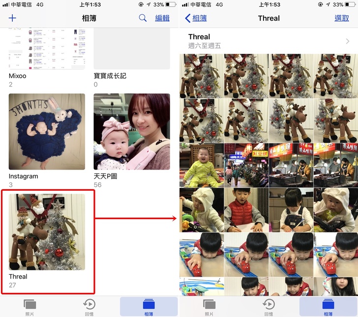 我也特別找了一下拍攝的所有照片檔案會存在手機哪邊,發現相簿裡頭已經自動新增了一個Threal的相簿,而且它儲存的是照片最原始的檔案喔!