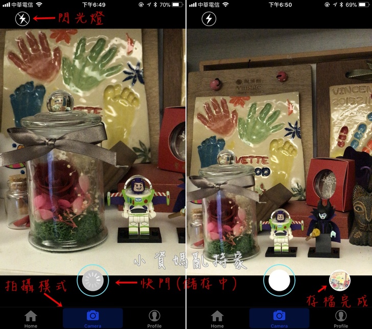 還有目前不能切換為前鏡頭拍攝(其實也無所謂啦!不能美肌我也不敢自拍XD)