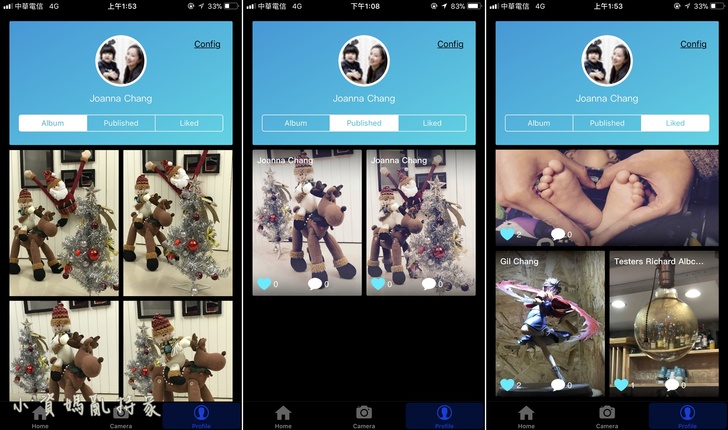 裡面的Album就是所有用這個app拍攝的相片,點開圖片一樣可以套用濾鏡與發布,然後左右滑動可以切換相片,不過目前相片有時候順序會亂跳