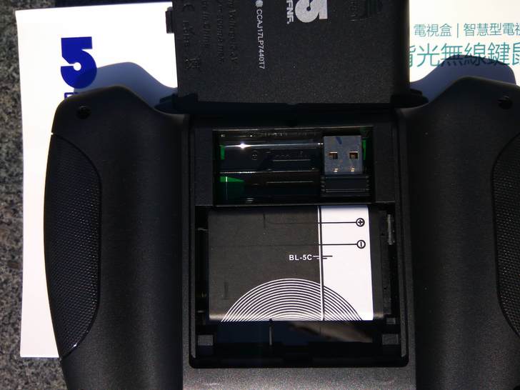 ▲上面開箱,是不是少了什麼?沒錯,電池蓋還沒拆,打開發現設計巧思,電力供應採用鋰電與AAA電池二種,而無線接收器則放在AAA電池盒中。