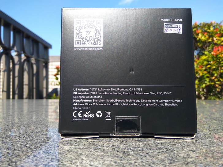 ▲盒裝背面有型號,TT-EP01,目前台灣由智選家(witsper)代理。可見製造地為中國。