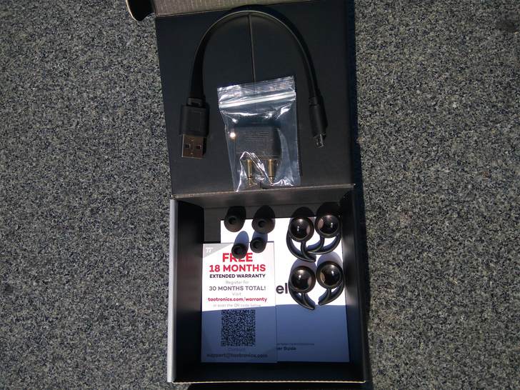 ▲主要是TT-EP01配件,包括耳塞與耳勾三對(一對在耳機上)、MicroB充電線、飛機用轉接頭,與說明書。還有延伸保固說明卡。