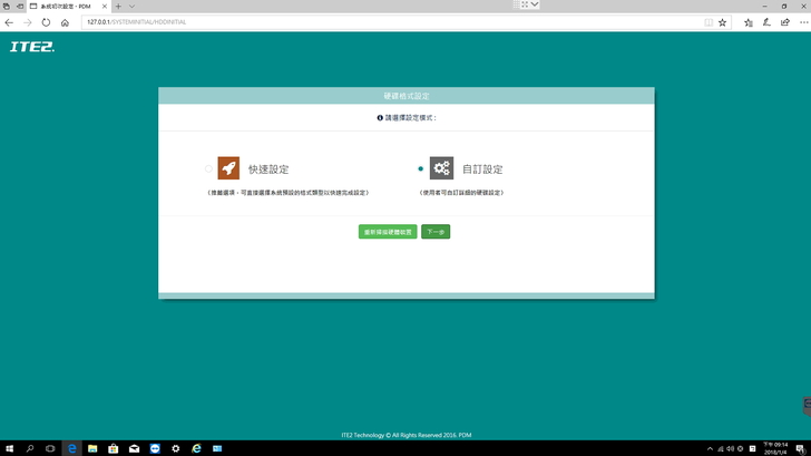 ▲ 硬碟格式設定,共有兩種模式: [快速設定] 及[自訂設定]