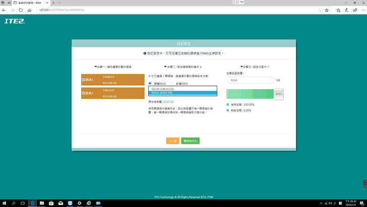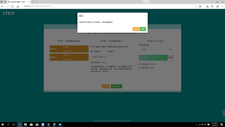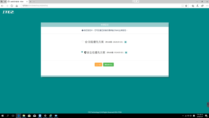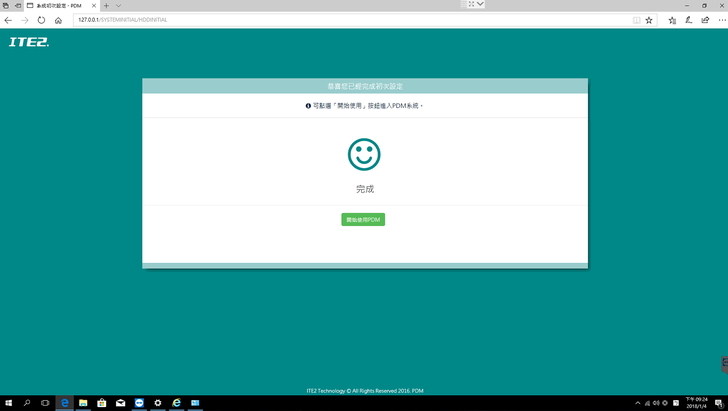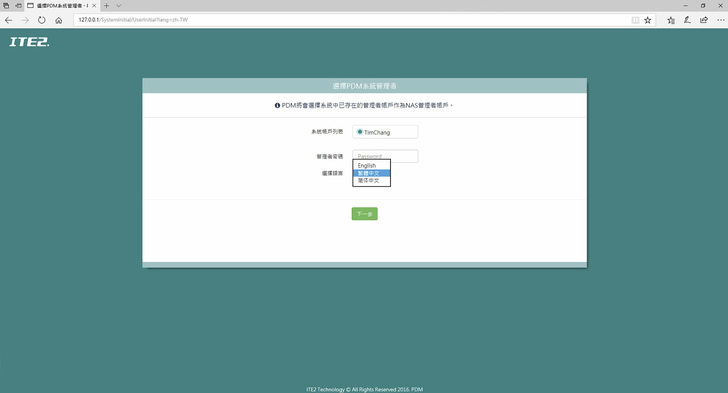 安裝完 PDM 後,請重新開機。重開機完畢後,開始設定 NAS,打開瀏覽器,在網址列地方輸入 127.0.0.1,即可進入設畫面