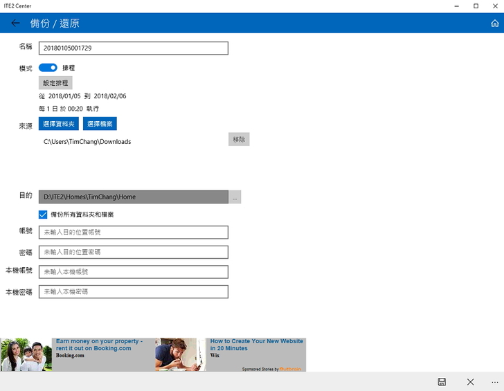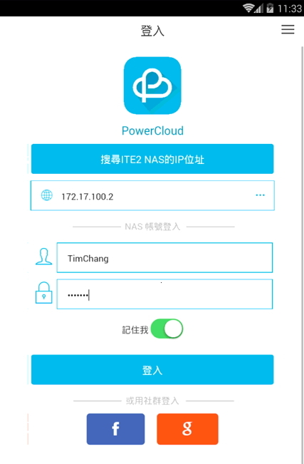 ▲ 輸入 IP 及帳號/密碼,連結 ITE2 NAS