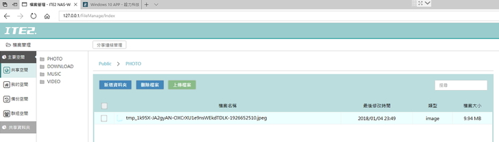 ▲ 在行動裝置上也可觀看 ITE2 NAS 上分享的檔案,以及上傳檔案