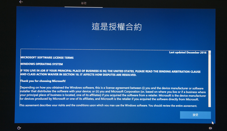 載入完畢後,就開始進行系統安裝設定,由於是採用 Windows 10 IoT Enterprise 作業系統,所以整個步驟大家應該都不會太過陌生!