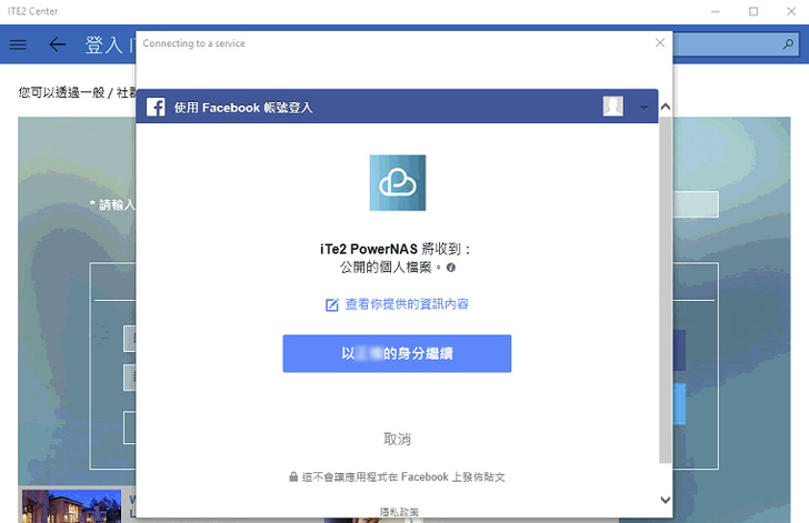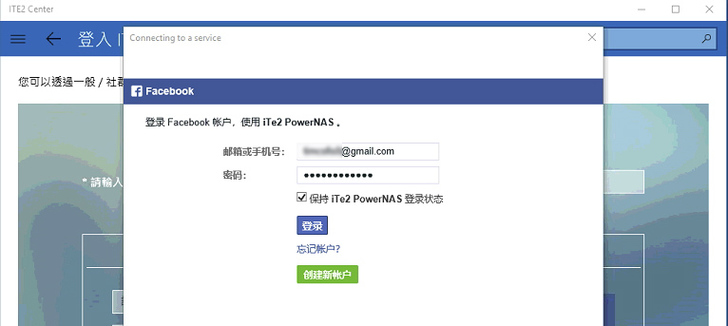 ▲ 在 ITE2 Center 中使用社群帳號登入