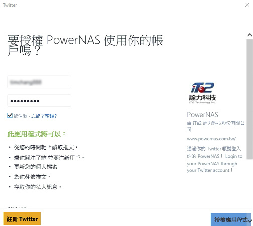 ▲ 如果想要分享訊至 Twitter 也可以,祗要授權程式即可