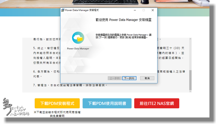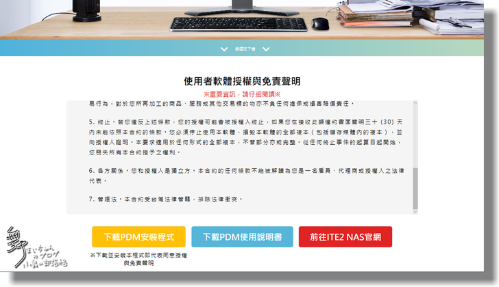 ▲首先在瀏覽器中輸入http://start.ite2nas.com ,進入ITE2 NAS的入口網站,選擇《下載pdm安裝程式》