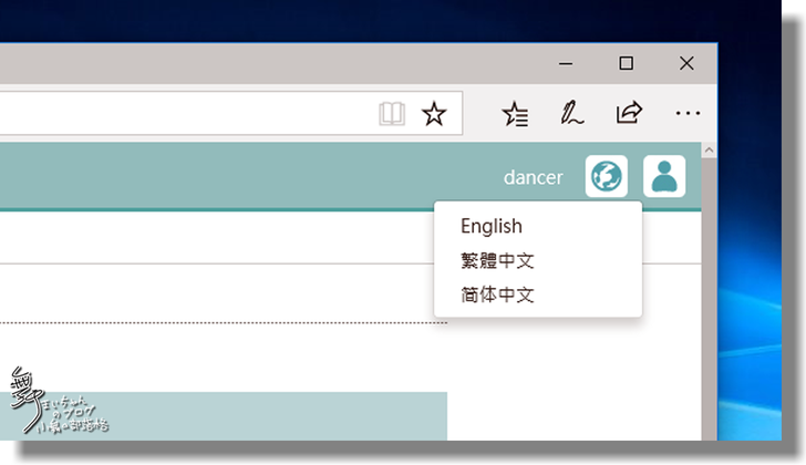 ▲登入後,左上角就會出現帳號名稱,地球符號是語系,不過只有三種語言可選。