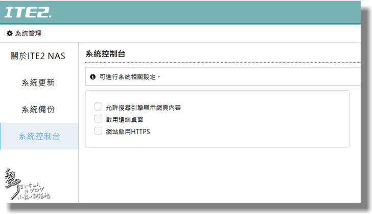 ▲系統控制台:使用者可以進行系統的相關設定,例如允許搜尋引擎顯示網頁內容、啟用遠端桌面或網站啟用 HTTPS。