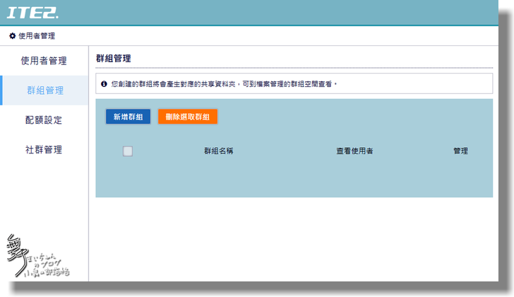 ▲群組管理:可以透過群組方式,將多個帳號加入至同一個群組中,方便管理各使用者能在同一個群組分享資訊。