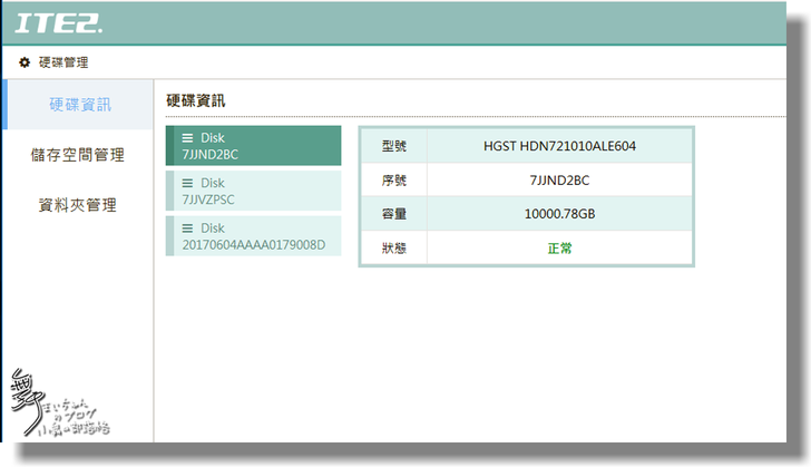 ▲這次安裝的是2顆HGST的DESKSTAR NAS HD 10TB,而NE-201的最大單顆硬碟支援容量也是10 TB。