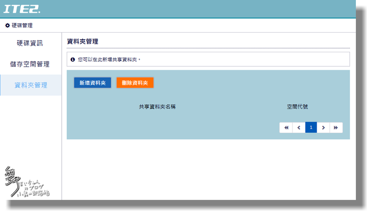 ▲在《資料夾管理》中,可以針對不同之硬碟分區建立個別的資料夾,並設定可以存取該資料夾之使用者權限。