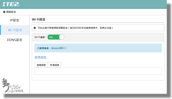 ▲第四個是『網路管理』,可以在此區設定NE-201的 IP、Wi-Fi、DDNS相關選項。