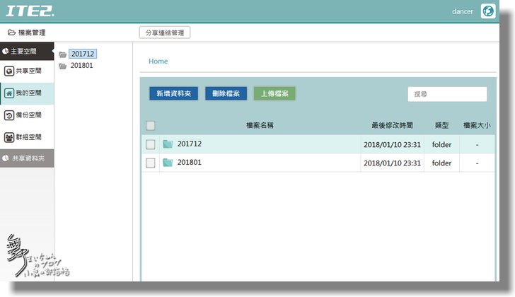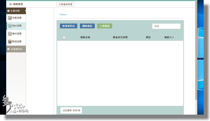 ▲在『我的空間』中,能建立資料夾後上傳檔案,並分享連結,讓朋友可以下載。