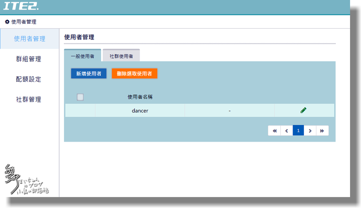 ▲第二項是『使用者管理』,可以管理所有 NAS 中的使用者、社群使用者、群組和配額設定。