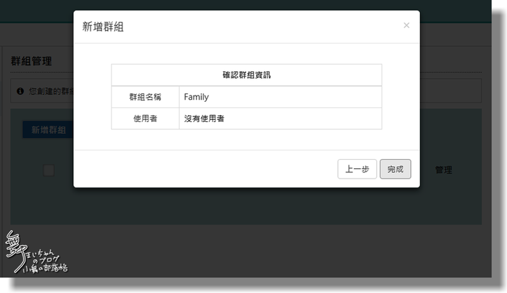 ▲確認群組資訊及群組成員無誤,點擊「完成」便完成群組的創建。