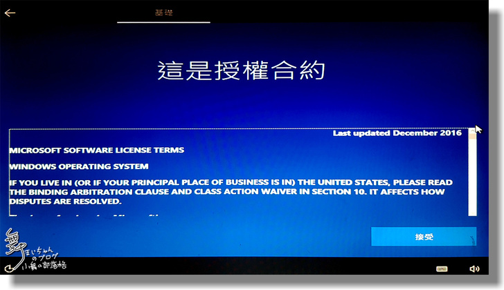 ▲接著就是授權合約頁面,閉著眼睛選擇《[我接受授權合約中的條款》就能繼續...