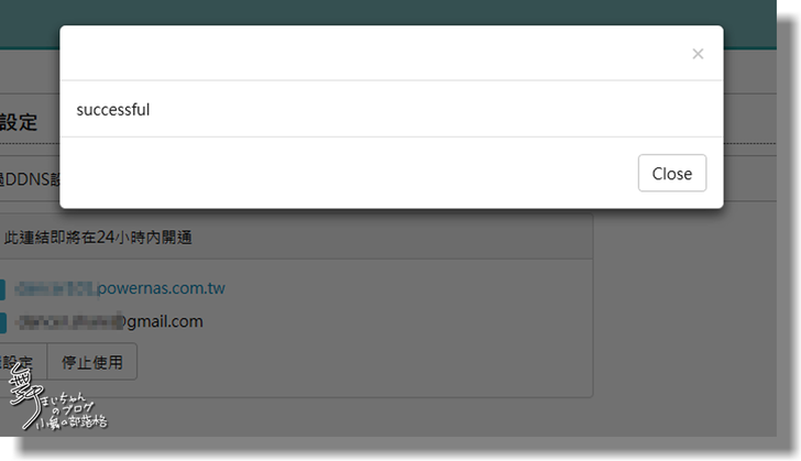 ▲不過要注意雖然是顯示成功,但還不能開始使用,因為需要24小時方能開通DDNS的連結。