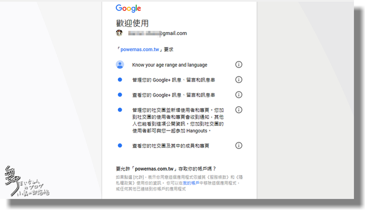 ▲設定Google+帳號只要輸入Google的Gmail和密碼