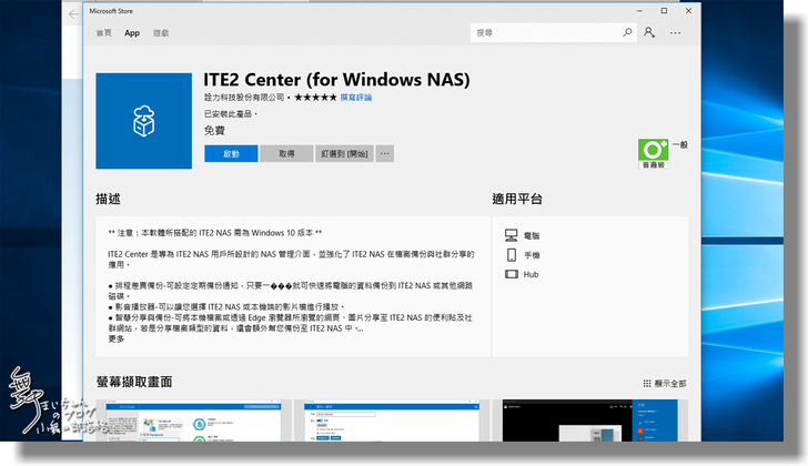 ▲詮力科技在 Windows 10 的市集裡,已推出專屬應用軟體 ITE2 Center