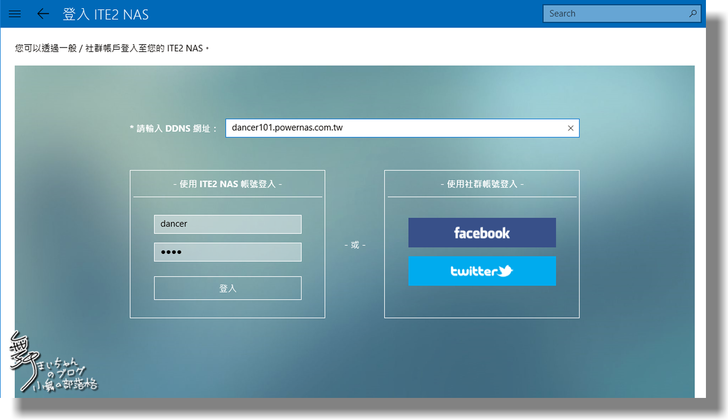 ▲透過原先設定的DDNS帳號或社群帳號,就可登入NAS,真是方便。
