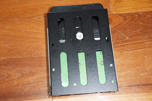 ▼ NE-201 的硬碟托盤底下有六個孔洞才是講硬碟鎖上的螺絲孔。