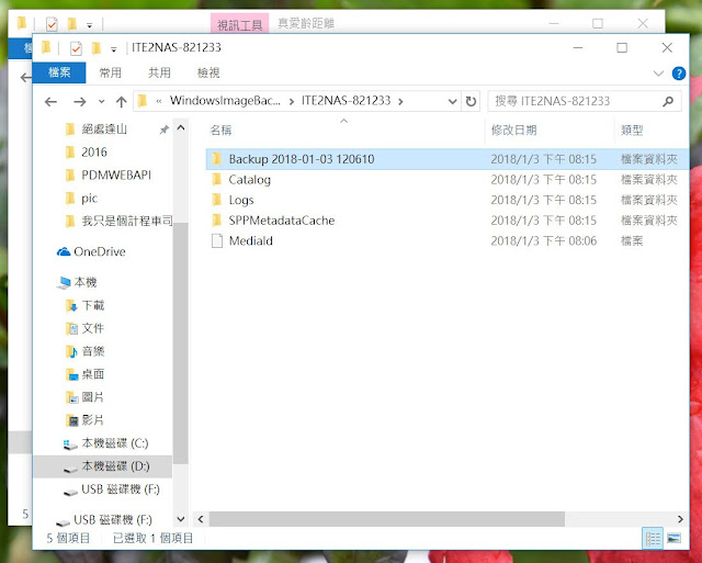 ▼ WindowsimageBackup 資料夾中可以看到有依時間建立的備份檔資料夾。