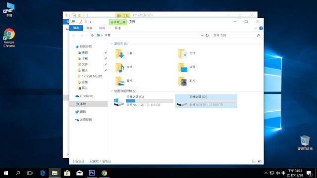 ▼ 看到下面桌面就知道,我安裝了不少軟體,如 Google Chrome、小紅傘軟體、音樂撥放軟體、影片撥放軟體、Line 、PC MAN和 Photoshop ....等,同時也換了我自己拍的照片當桌布,畢竟是大家非常熟悉的 Windows 系統,相信任何人都可以輕鬆的使用 NE-201 和安裝軟體。