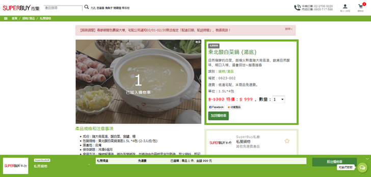 首先到SuperBuy市集購買酸菜白肉鍋湯底(他們還有很多種湯底,要吃麻辣的也有喔)