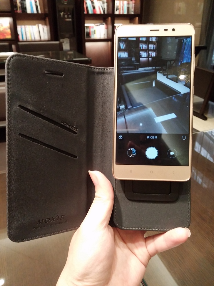 ▲而這時就可以以拿著裝上手機的防電磁波皮套拍照了。可以看到可移膠黏性不錯,完全沒有支撐,手機穩固的貼在皮套上,拍照亦無問題。