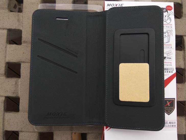MOXIE摩新X-SHELL防電磁波手機皮套,除了防護電磁波外,可讓NFC卡片感應正常,且有防側錄卡套設計,亦可變成支架方便歡賞影片,皆算是貼心實用的設計。皮套材質為仿真皮合成皮料,觸感柔軟,皮套周圍質感堅硬,若手機不小心掉落,亦具有一定的保護作用。