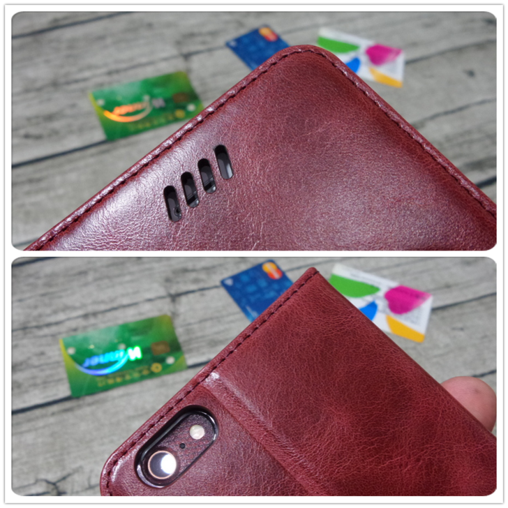 【▼】面對iPhone的擴音喇叭,手機皮套正上方開了四個斜孔讓聲音能夠通透。