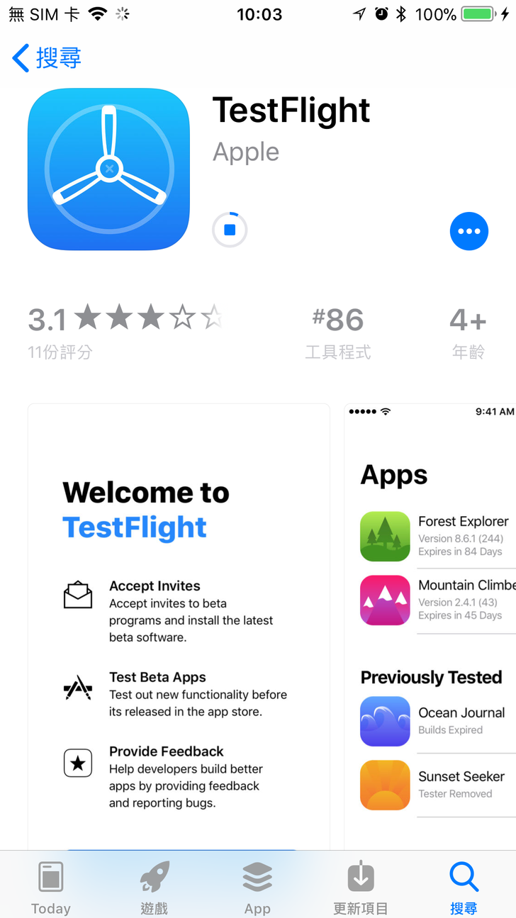 介面並不複雜,應該是剛完成開發,許多功能都還有待日後補充。目前APP尚未在APP Store上架,必須通過TestFight這個APP才能下載測試版本來使用
