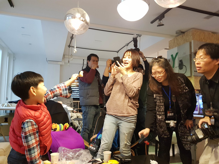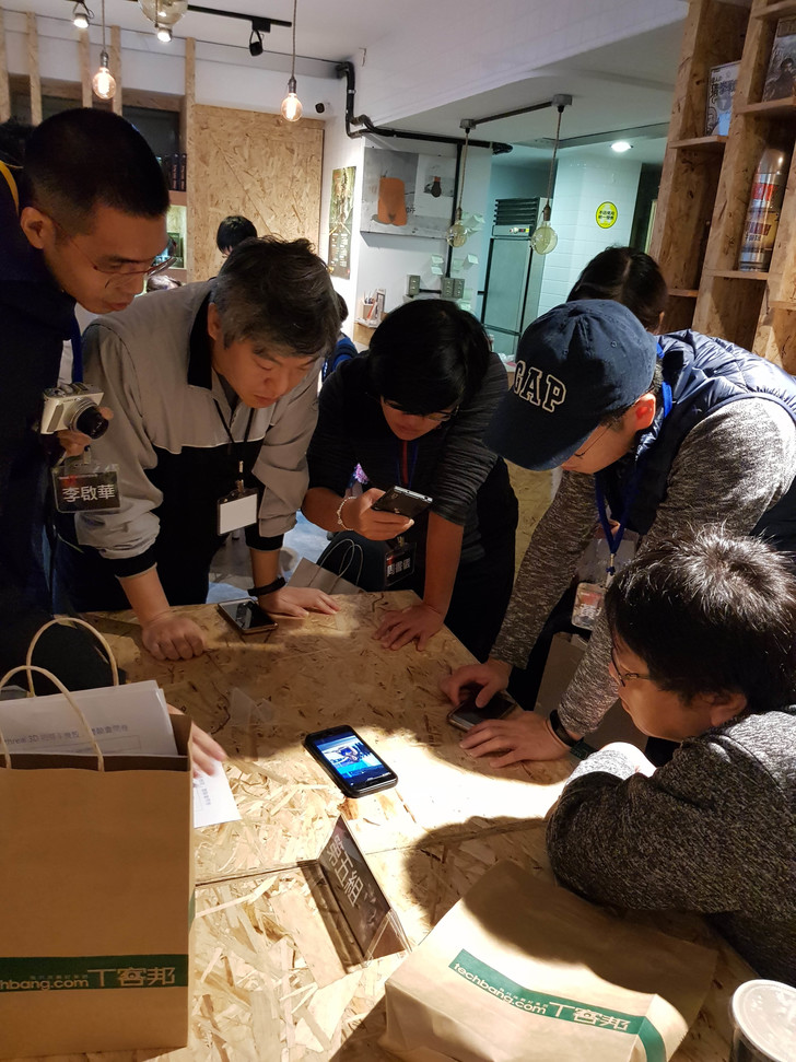 宇恩分享結束後,有個自由體驗時間,並且要分組拍出3D作品,交由特亞的人員評比,評比最優的組別會有小獎品,因此各組都很認真的研究要怎麼拍效果最好