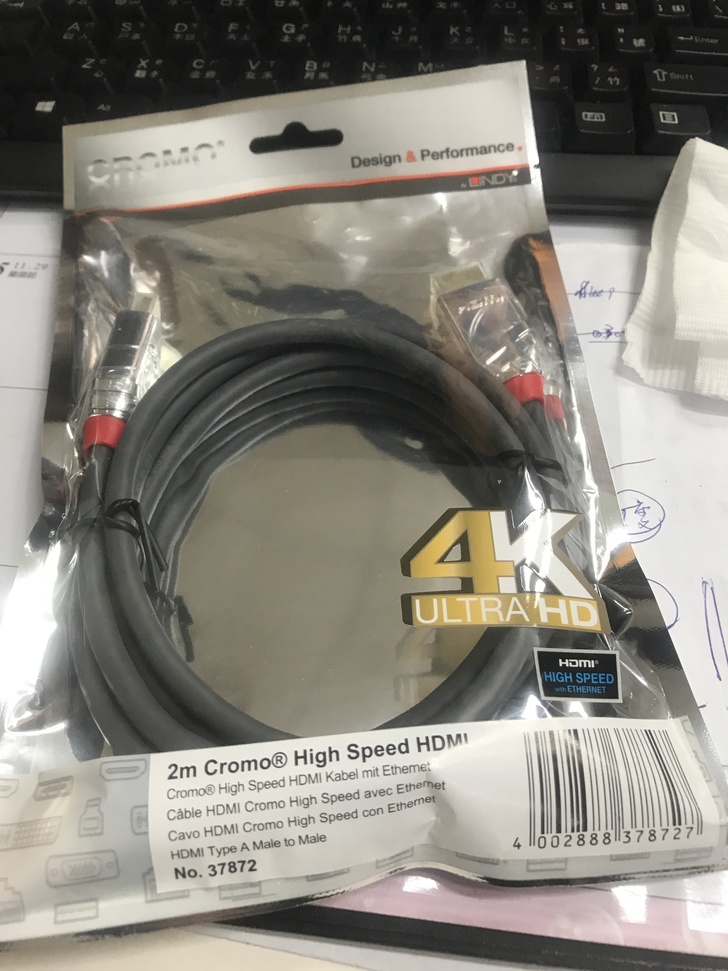 LINDY 林帝-CROMO鉻系列(37872)線長2m,線材符合HDMI 2.0版規格,頻寬為600MHz/18Gbps,接頭與接點端子採24k純金電鍍,連接器採用鍍鉻處理,同時可以阻絕不必要的雜訊,雙向音訊回傳通道 (ARC),影音連接更容易,支援最高解析度(4096 x 2160p)-60Hz、(3840 x 2160p)-60Hz、1080p 3D。