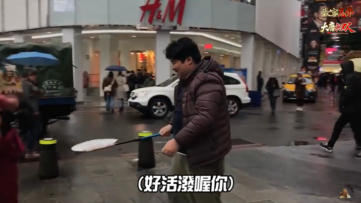 統神真的是個活潑的胖子耶! 天氣這麼冷還在西門町蹦蹦跳跳 國動都在旁邊變冰棒了XDD