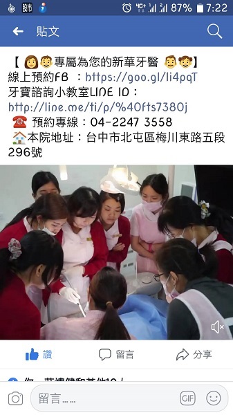 貼文裡他們有提供LINE@小幫手預約掛號服務