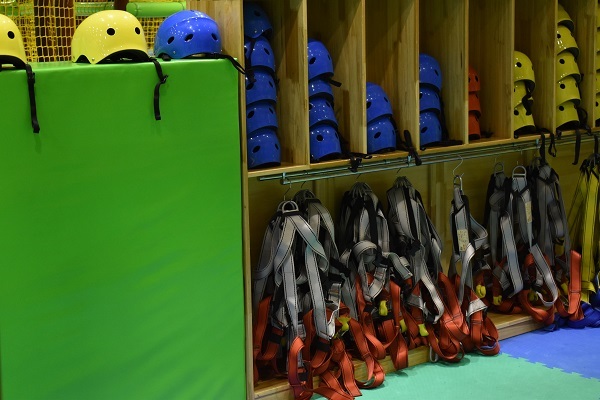 旁邊的置物櫃上還擺有安全帽以及安全鎖繩