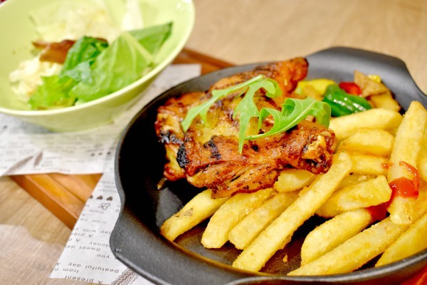 搭配著乾煎時蔬和薯條以女性的小鳥胃來說一個人吃剛剛好