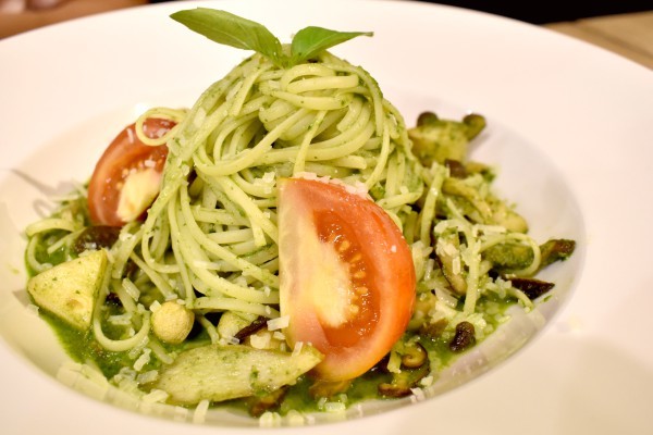 麵灑上些許起士粉更增加青醬麵的濃郁口感