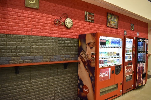 若是口渴了在繪畫牆旁還有設置復古飲料機可以購買飲料