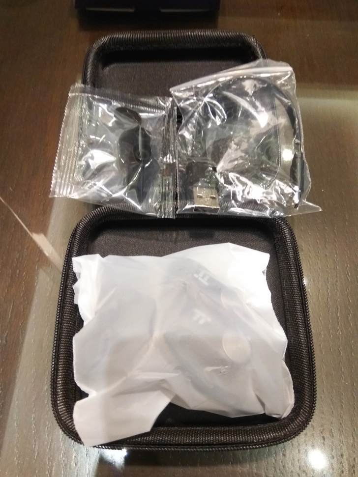▲持續開盒,攜行盒內有BH024本體與配件(包括USB充電線與耳塞),都用塑膠袋裝好。