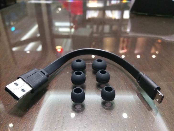 ▲充電線是常見Micro B規格,耳塞提供大、中、小三種,其一是附在本體BH024上。