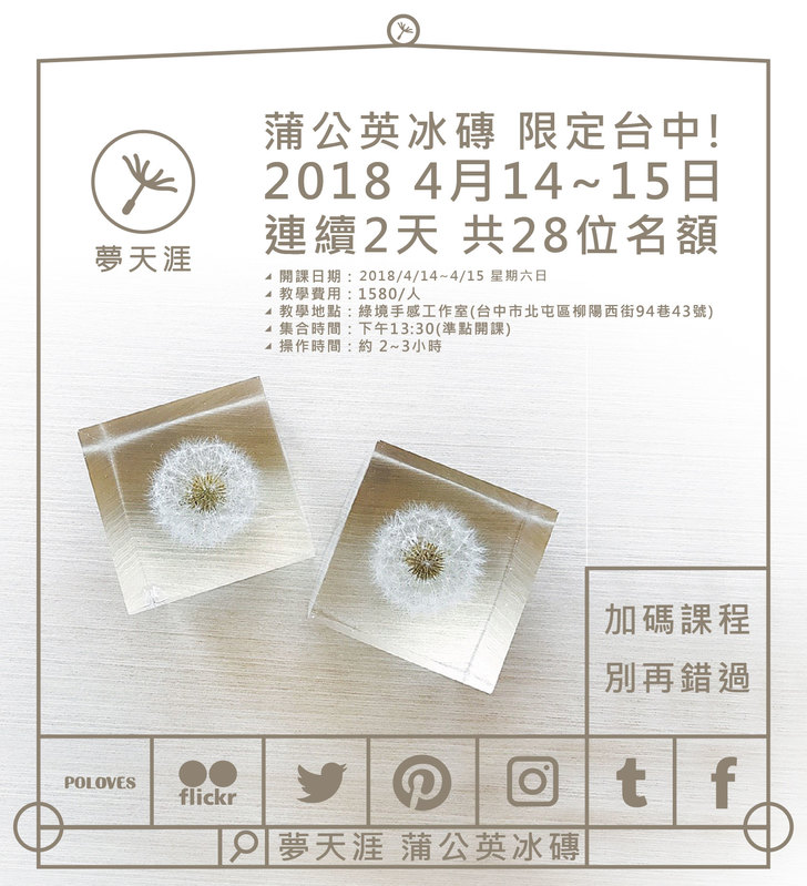 夢天涯 蒲公英冰磚 限定台中 4/14~15 開課